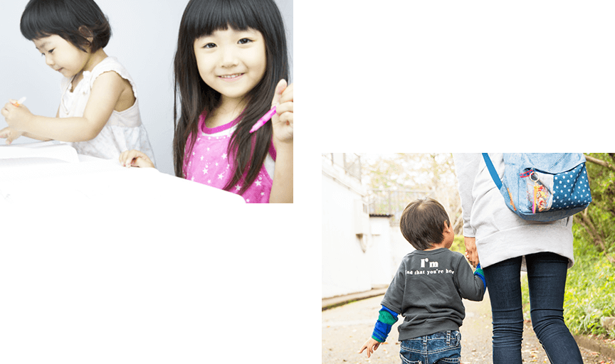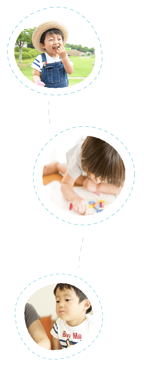 お子様の一人ひとりの成長や個性・特性に合わせた活動プログラム(個別課題を取り入れた個別療育、社会性を養う遊び・製作活動・社会見学等の集団療育)を行うことで、楽しみながら心身の発達につながるよう支援します。